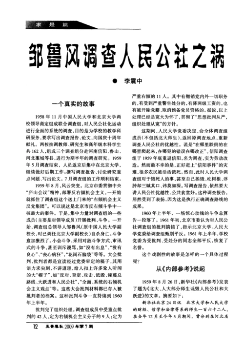 《邹鲁风调查人民公社之祸》